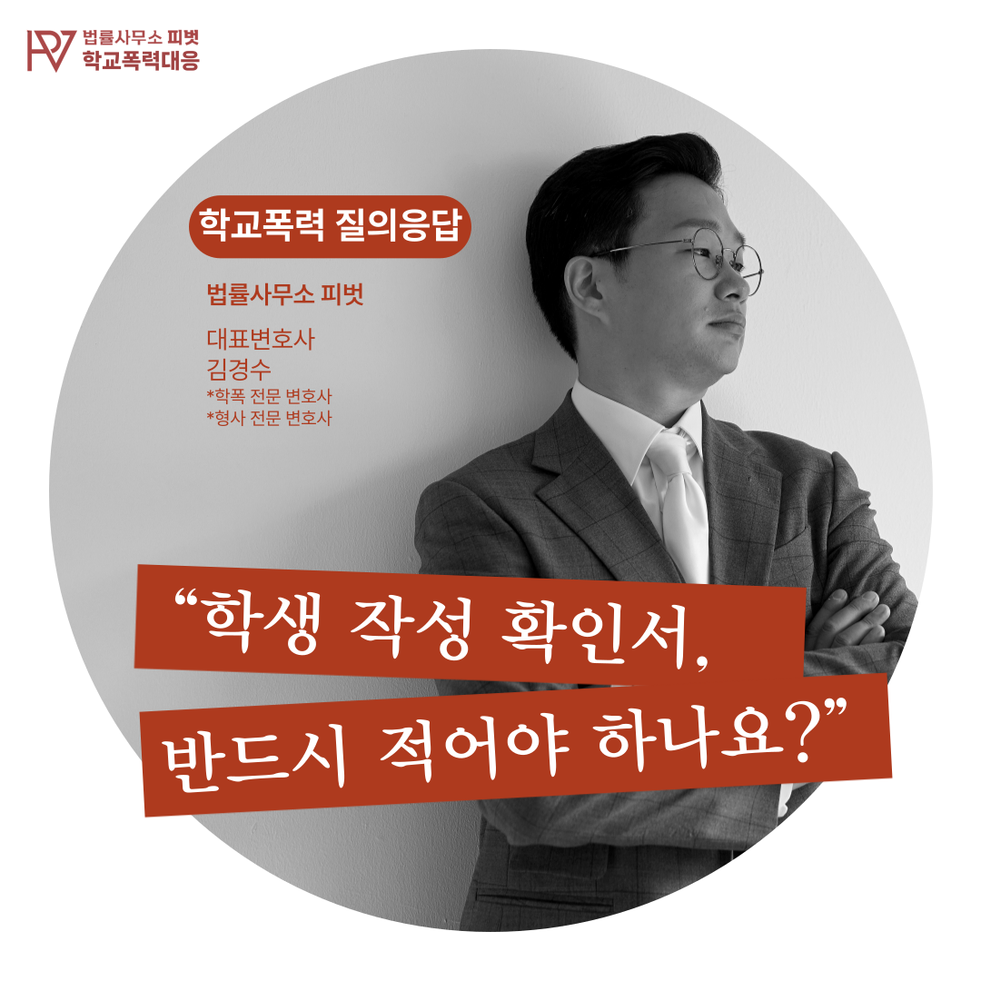 | [학폭 토막상식 7편] 가해 학생 작성 확인서 작성했다는데 이게 뭔가요? (0) | 2025.04.21 |
