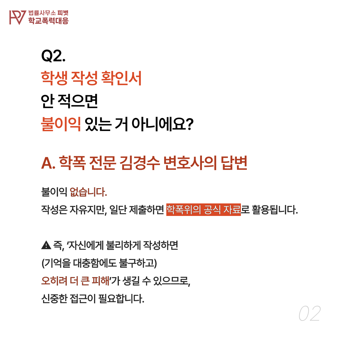 | [학폭 토막상식 7편] 가해 학생 작성 확인서 작성했다는데 이게 뭔가요? (0) | 2025.04.21 |