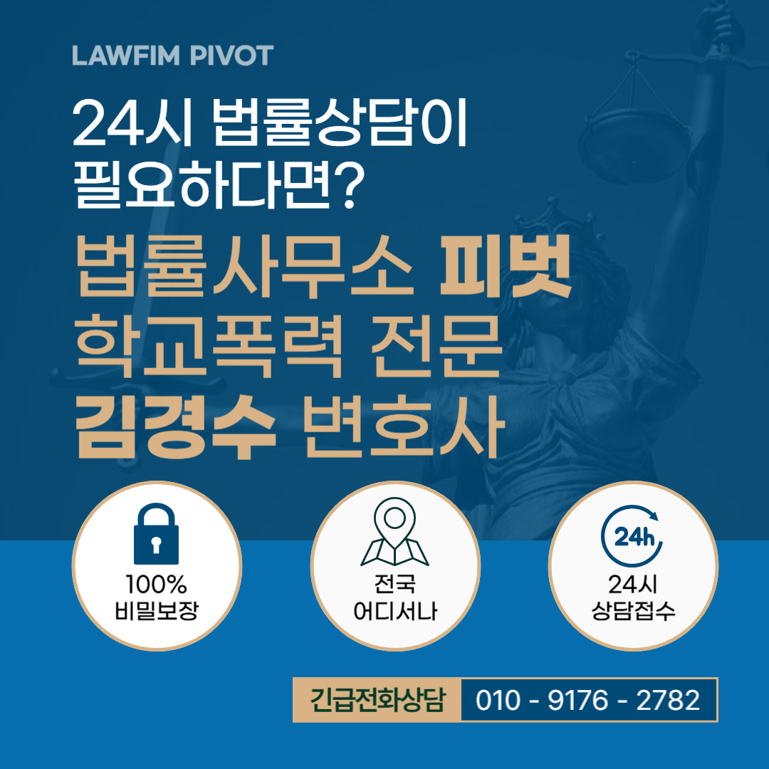 정확한 사실관계와 동의서 등 서면 확인이 함께 필요합니다.법률사무소 피벗 학폭 전문 김경수 변호사 학교폭력 24시간 상담