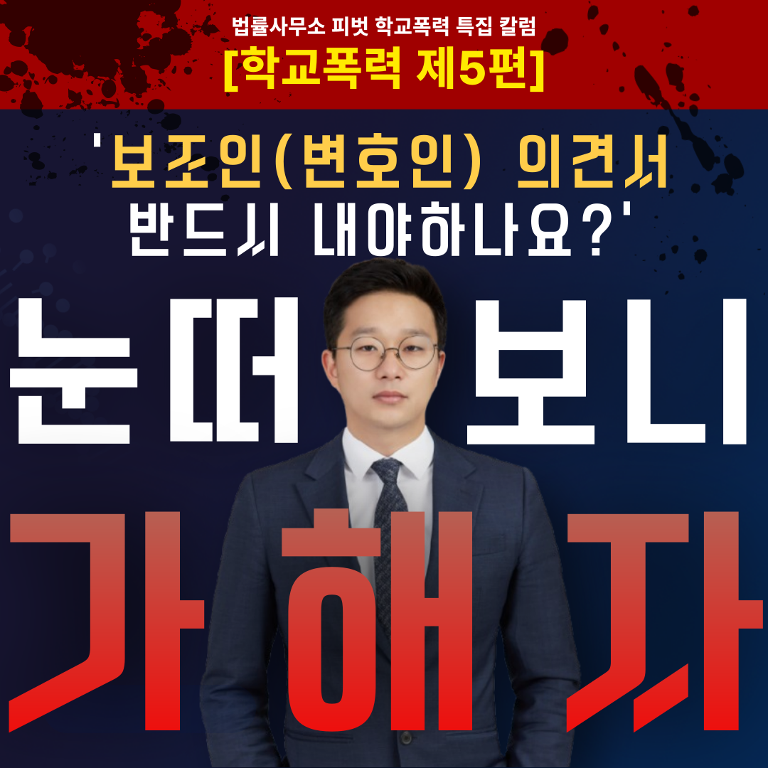 | [6편] " 눈 떠 보니 [학교폭력] 가해자?" I '보조인(변호인)이 같이 출석할 필요가 있나요?'' (0) | 2025.04.16 |